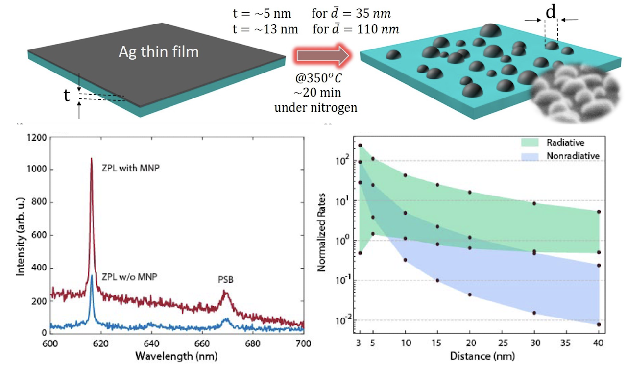 We design and realize Integrated Nanophotonic structures to achieve maximum efficiency and control over our quantum emitters. We are interested in enhancing the fundamental light-matter interaction by coupling solid-state emitters to structures like photonic microcavities and plasmonic structures. For instance, we investigate hBN-plasmonic couplingto enhance and actively control the quantum light emission from defects, providing a platform for highly efficient, on-chip quantum sources.